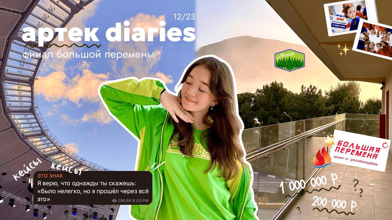 привет!! меня зовут лена и я рада видеть тебя здесь таймкоды: 00:00 - первые дни в артеке 06:35 - севастополь и школа 10:50 - будни в любимом артеке 17:39 - лучший в мире вожатник и аю-даг 20:05 - открытие финала большой перемены, кейсы и награждение 25:52 - закрытие финала большой перемены, закрытие смены и разъезд будем друзьями? тгк: https://t.me/imleenashse инст: https://instagram.com/imleenas тт: https://www.tiktok.com/@imleenas?_t=8ecECowd8qd&_r=1 тгк лучшего в мире диджея https://t.me/ArTishOKi31 ют канал этого же диджея https://www.youtube.com/@UCa9SNpv2xJanDc1K_-9Kfcw тгк лучшей вожатой людки https://t.me/GaEhKa_v_Arteke #артек #большаяперемена #лесной #егэ #studywithme #егэ2024 #studymotivation #studyvlog #vlog #выпускной #лагерь #детскийлагерь #движениепервых #финал #финалбольшойперемены #вожатый #дети #залетипж