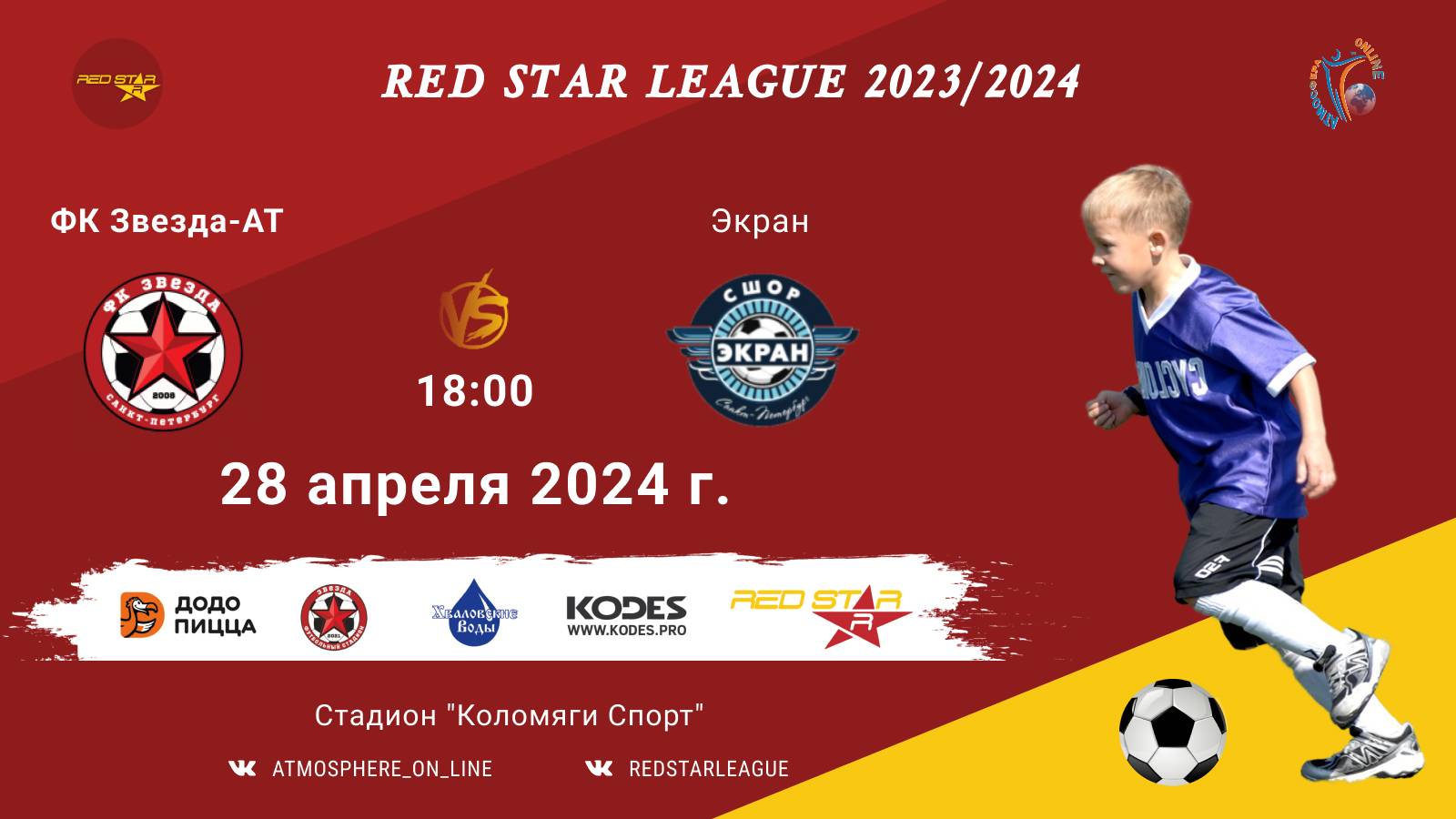 Red Star League среди команд 2013 г.р. (U11) 28 АПРЕЛЯ 2024 САНКТ-ПЕТЕРБУРГ, Стадион "Коломяги-Спорт" ФК "Звезда-АТ" - ФК "Экран"/Red Star League, 28-04-2024 18:00
