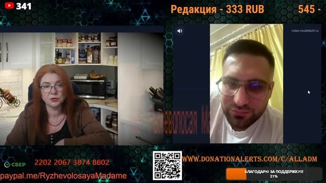 Стримы проводим на новом канале по ссылке https://www.youtube.com/channel/UCpd7cP8a8TbXkhRfZB9-V1g также стримы можно смотреть на следующих платформах https://vkplay.live/rmadame https://vk.com/video/ @RMadame https://boosty.to/ryzhevolosaya-madame Свежие нарезки можно смотреть https://dzen.ru/redheadmadamchat?share_to=link https://www.youtube.com/@RMadam1 https://www.youtube.com/@RMadame Пообщаться в голосовом чате, обсудить новости и узнать первым о предстоящем стриме можно подписавшись на телеграмм канал https://t.me/redheadMadamchat Все беседы ведутся с развлекательной целью и не направлены на разжигание какой либо вражды. Поддержать меня карта Сбер 2202 2067 3874 8602, Тинькофф 2200 7009 0724 4924 или голосовым донатом по ссылке https://www.donationalerts.com/r/alladm Для вопросов и предложений @RedHeadMadamBot