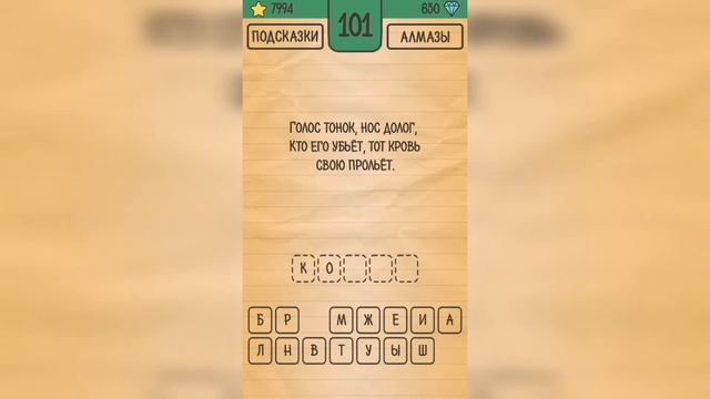 Как пройти Загадки Ребусы Шарады, ответы, решение раздел Загадка Уровень 101 Голос тонок, нос долог, кто его убьёт, тот кровь свою прольёт. Привет, ребята! Пожалуйста, поддержите канал лайком ? и подпиской ? Напишите, какие игры вам ещё интересны. И я постараюсь пройти их для вас ?