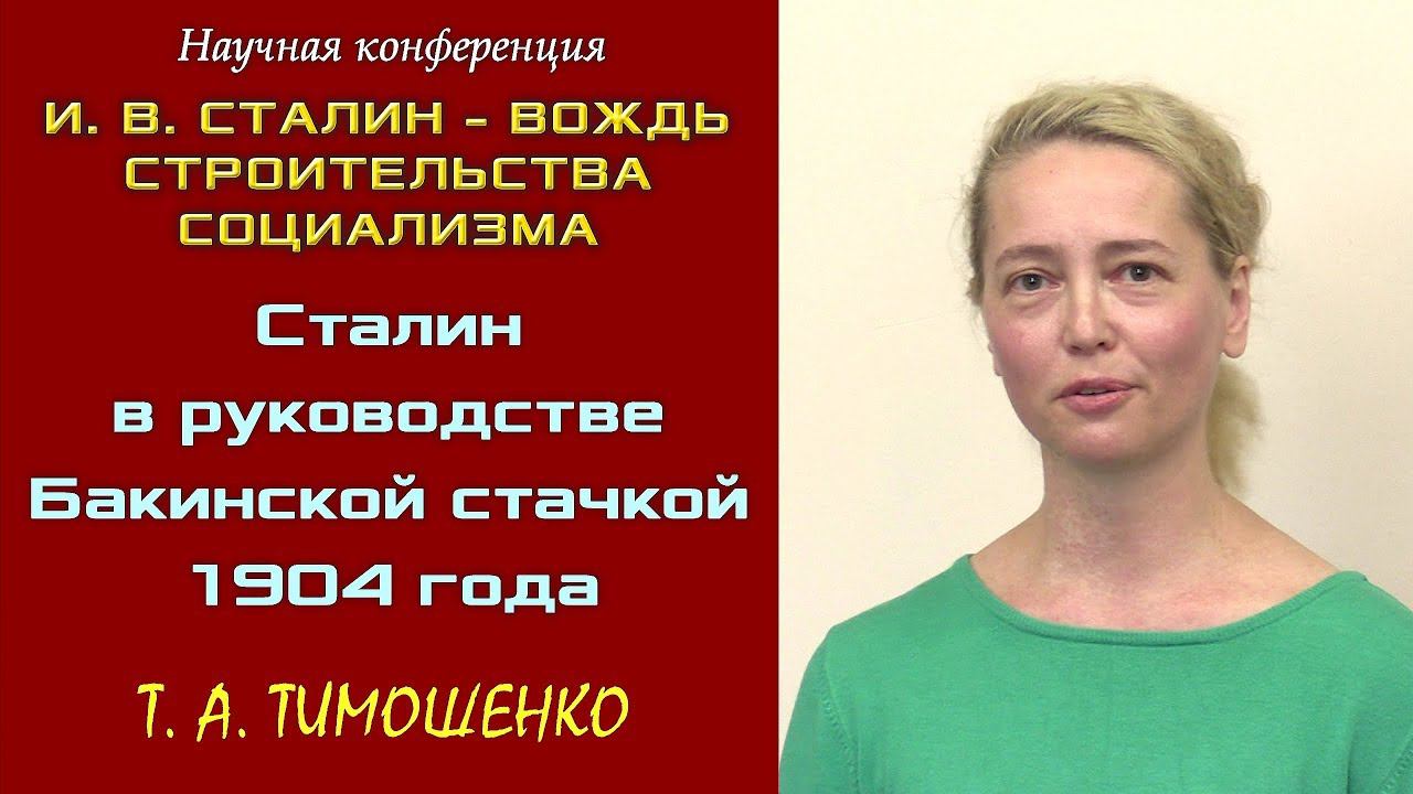 «Сталин в руководстве Бакинской стачкой 1904 года». Татьяна Алексеевна Тимошенко, слушательница второго отделения Красного университета, член Рабочей партии России, г. Ленинград. Ссылка на коллективный договор бакинских рабочих в журнале «Нефтяное дело» №24 от 31 декабря 1904 года: https://cloud.mail.ru/public/3mse/39bhhdtFR Международная научно-практическая конференция «И.В.Сталин – вождь строительства социализма». Конференция посвящена 140-летию со дня рождения Иосифа Виссарионовича Сталина. Конференция состоялась 24 августа 2019 года в доме-музее Ульяновых-Елизаровых по адресу: Ленинградская область, посёлок Ульяновка, Ульяновское шоссе д. 20. Все выступления конференции: https://www.youtube.com/playlist?list=PLXnc70nN1sO4JolZekpT-O4hOeK8YDfEn Как вступить в Рабочую партию России: http://www.r-p-w.ru/kak-vstupit-v-rabochuyu-partiyu-rossii.html ___ Для пожертвований в Фонд Рабочей Академии: Карта Сбербанк: 5469550034869302 Михаил Васильевич П. _ ___ Рабочая партия России: http://www.r-p-w.ru РПР ВКонтакте: https://vk.com/rabparty Северо-Кавказское отделение РПР: https://rpw-krd.ru