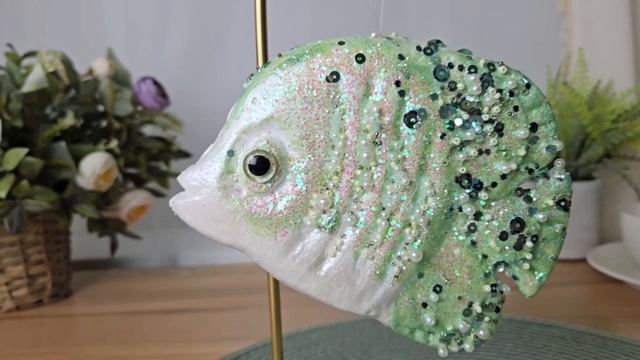 https://www.morozko-shop.ru/ Ёлочная игрушка ЗЕЛЁНАЯ РЫБКА-БАБОЧКА, серия МИРОВОЙ ОКЕАН, пенополистирол, 16 см, 1151758-2