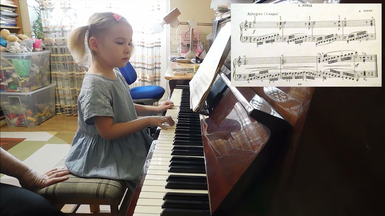 Ярослава Лемешкина, 4 года. Работа над этюдом К.Черни.