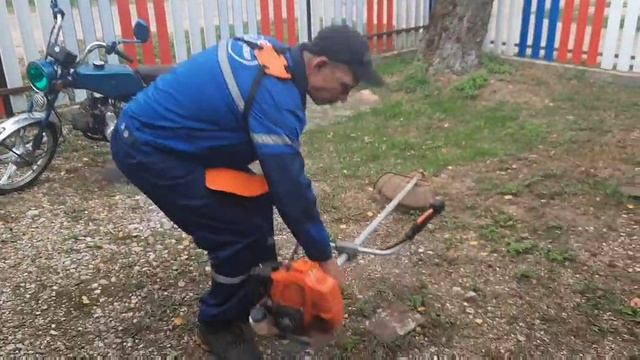 колян косит траву