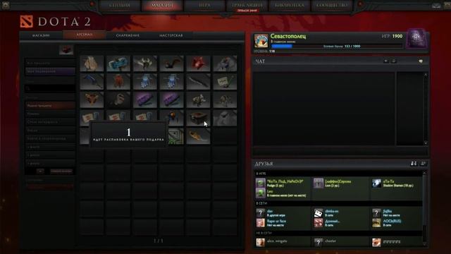 Dota 2 Открытие подарочного сундука 118 уровня