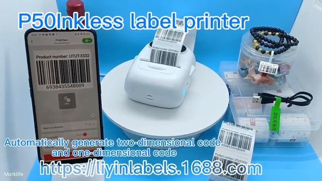P50 Inkless Label Printer,Print width 15-57 mm,APP has nine system languages·