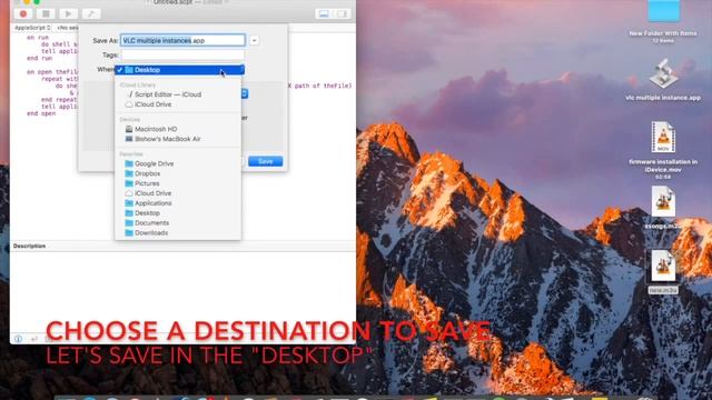 this video shows how to run multiple files in separate windows in mac os at the same time (multiple instances of vlc in mac os x) script as per the video: on run do shell script "open -n /Applications/VLC.app" tell application "VLC" to activate end run on open theFiles repeat with theFile in theFiles do shell script "open -na /Applications/VLC.app " & quote & (POSIX path of theFile) & quote end repeat tell application "VLC" to activate end open