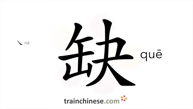 缺 (quē) be short of; lack; vacancy; incomplete; imperfect