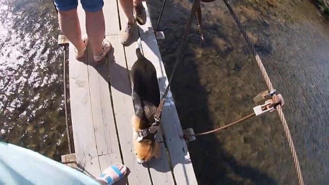 Подвесной мост на Дукче в летний день и отдых на природе в Магадане. Магаданское лето 2020