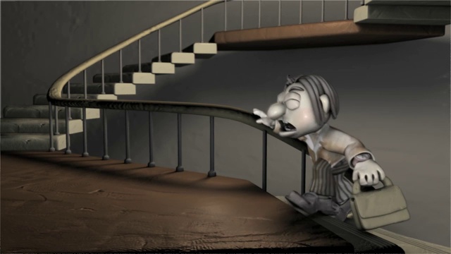 Мерфи спешит на собеседование, поднимается на лифте на 5-й этаж, а там пешком по лестнице до нужного этажа. Когда он находит кабинет где должно быть собеседование, то видит информацию, что кабинет находится на 1-ом этаже. Он спускается, и когда все-таки находит кабинет на первом этаже, то видит что собеседование уже закончилось...