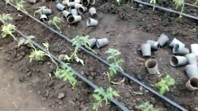 Высадка рассады томата - без полива грунта