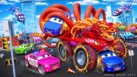 Полицейские машины против злого грузовика-монстра Медузы! / Чудовищный Хаос в Автомобилях Города-Гер