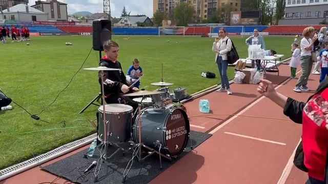 Барабанщик на стадионе.