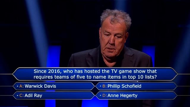 When a quiz show question comes up, you'd think an actual quiz show host might know the answer! Watch the show: https://bit.ly/WWTBAM_UK_Hub Apply for the show: http://bit.ly/WWTBAMBeOnTV Subscribe: https://goo.gl/71nUFe Visit The Official Who Wants To Be A Millionaire? Facebook: http://bit.ly/WWTBMFacebook Twitter: http://bit.ly/WWTBAMTwtr Instagram: http://bit.ly/WWTBAMGram #WhoWantsToBeAMillionaire #JeremyClarkson #QuizShows