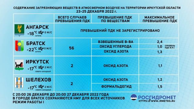 [26.12.2022] Мониторинг состояния атмосферного воздуха 23-25.12.2022