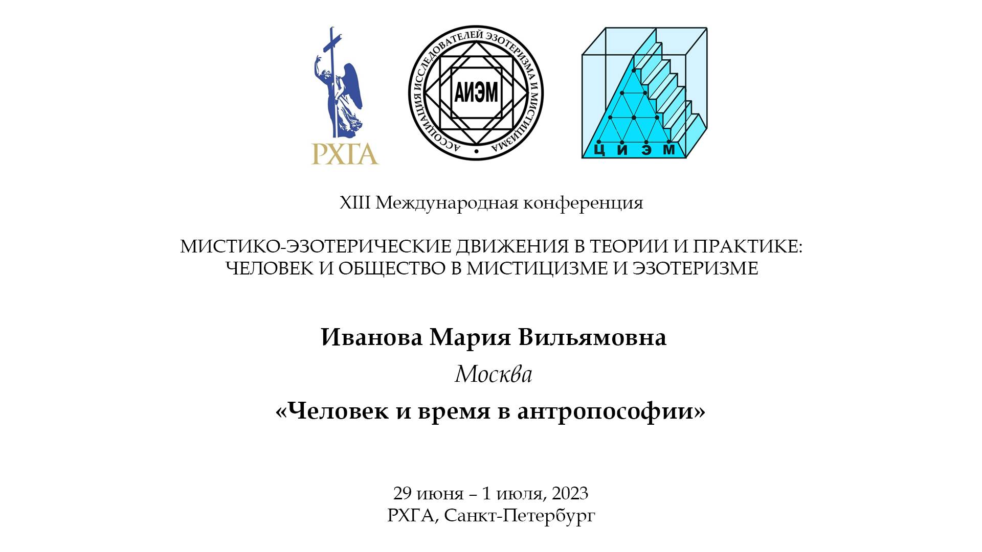 Иванова Мария Вильямовна (магистр религиоведения, Москва). Человек и время в антропософии