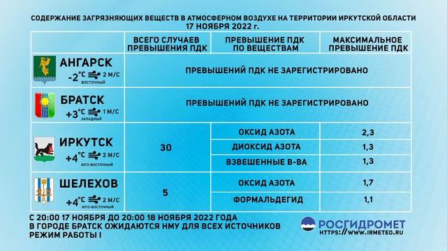 [18.11.2022] Мониторинг состояния атмосферного воздуха 17.11.2022