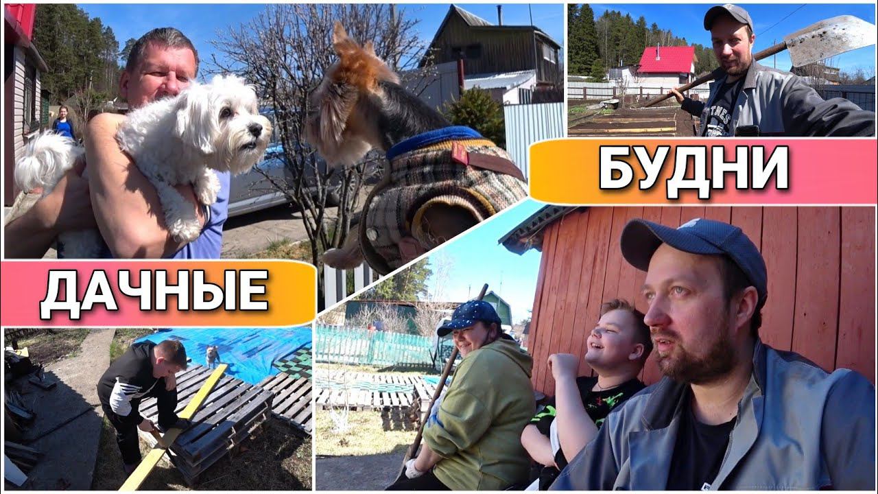 ВЛОГ!Арчик нашёл себе друга Ричи/Сделали с Димкой аккуратные грядки/Засыпали опилом малину/На даче