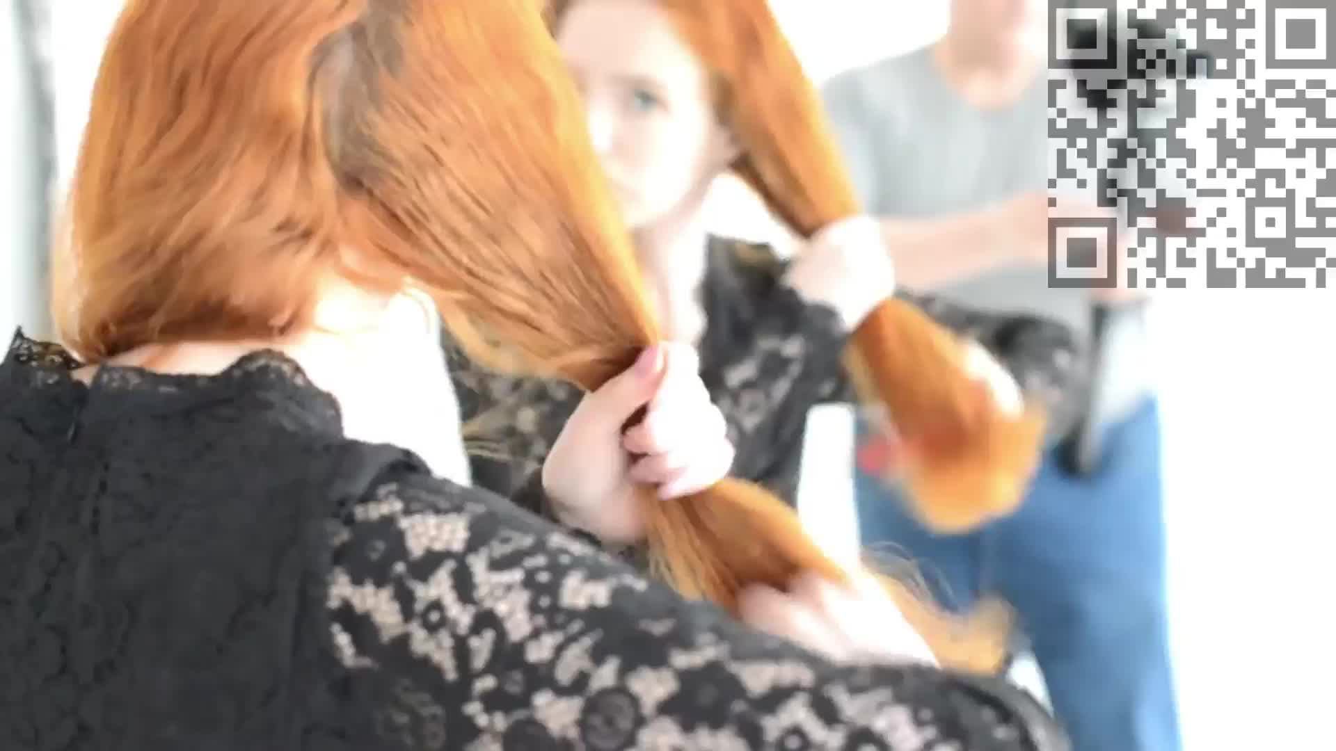 Рыжая девушка у зеркала в комнате