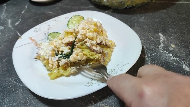 Просто на ужин салат рыбный. Всё, что нужно есть в холодильнике.