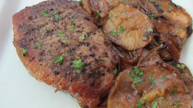 Свиная отбивная под яблочно-луковым соусом