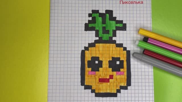 В Этом видео уроке я вас научу Рисовать Кавайный ананас по клеточкам