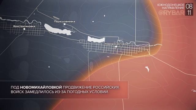 ▪️Украинский коптер сбросил взрывное устройство на электроподстанцию Глушковской районной электрической сети. ▪️Штурмовые группы ВСУ в очередной раз попытались атаковать позиции ВС РФ в районе Куземовки, но были остановлены артиллерийским огнем. ▪️Южнее, под Макеевкой, российские военнослужащие отбили атаку украинской штурмовой группы усиленной бронетехникой. ▪️В ходе обстрела Ясиноватой украинские формирования вывели из строя местную электроподстанцию. ▪️Украинские формирования продолжают наносить удары по жилым кварталам Донецка. В результате обстрелов погибло не менее двух человек, в том числе 15-летняя девочка. Несколько мирных жителей ранено. ▪️В Марьинке продолжаются напряженные бои: российские штурмовые группы продвигаются к проспекту Дружбы — до него осталось 200 метров. Под Новомихайловкой продвижение российских войск замедлилось из-за погодных условий. ▪️На границе Николаевской и Херсонской областей украинские формирования провели разведку боем у Правдино. ▪️После неудачной попытки наступления со стороны Николаева противник атаковал на северо-востоке Херсонской области. ▪️Противник начал штурм российских позиций в Снигиревке, сумев закрепиться вдоль железной дороги на северной окраине поселка. Одной из колонн ВСУ удалось прорваться через весь поселок, но она была уничтожена ударом российской артиллерии. За поселок продолжаются бои. #видео #карта #инфокарта #фронт #сво #бои #хроника #спецоперация #8ноября #украина #россия