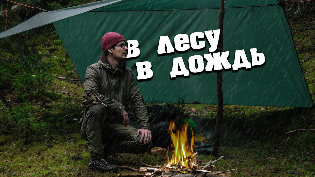 ПОХОД В ЛЕС ПОД ДОЖДЕМ - УКРЫТИЕ ПОД ТЕНТОМ - КОСТЕР В ДОЖДЬ