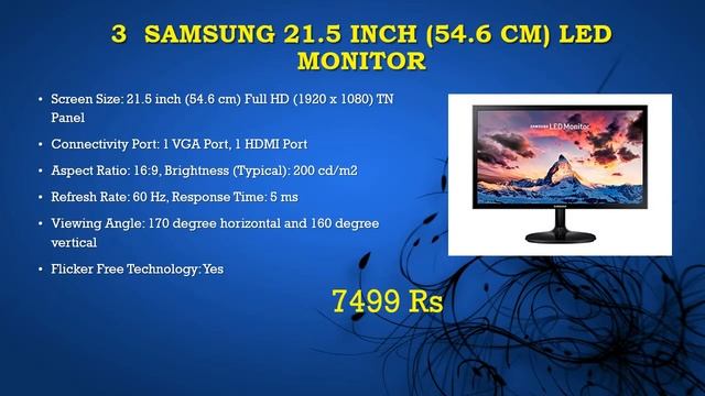 Top 5 LED Monitor for PC (Personal Computer) in India at Lowest Price online as per customer reviews, user experience, specs quality and value for money. Best LED Monitors on Amazon https://amzn.to/2F0s0RM Flipkart http://fkrt.it/M1qkU2NNNN 1 HP 21.5 inch (54.6 cm) Edge to Edge LED Monitor - Full HD, IPS Panel with VGA, HDMI Ports - 22ES https://amzn.to/2MSj0RI 2 LG 22 inch (55.88 cm) LED Monitor - Full HD, IPS Panel with VGA, HDMI, DVI, Heaphone Ports - 22MP68VQ (Black) https://amzn.to/2BQnMe7 3 Samsung 21.5 inch (54.6 cm) LED Monitor - Full HD, TN Panel with VGA, HDMI Ports - LS22F355FHWXXL (Black) https://amzn.to/2wpN7qf 4 Dell 19.5 inch (49.5 cm) LED Monitor - HD, TN Panel with VGA, Display Ports - E2016H (Black) https://amzn.to/2wklV5ZG 5 Dell 21.5 inch (54.6 cm) Ultra Thin Bezel LED Monitor - Full HD, IPS Panel with VGA, HDMI, Audio https://amzn.to/2wzYWJJ