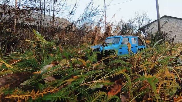 Два радиоуправляемых внедорожника по осенним лужам.