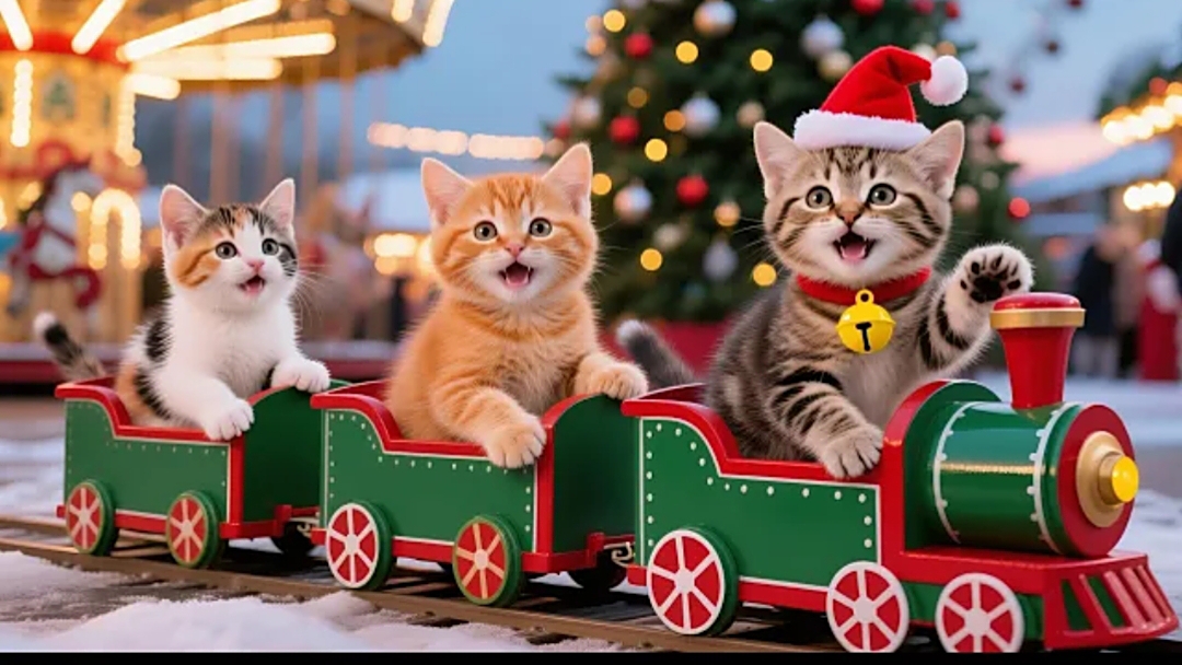 Мультики для детей, котики гуляют на новогодней ярмарке, мультфильм, видео про кошек, мультик