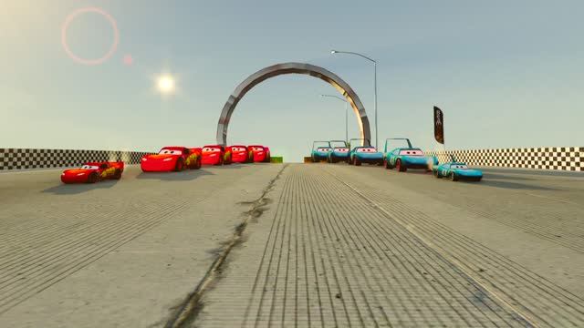 Мультики для детей. молния маквин разного размера прыгает с большой горки