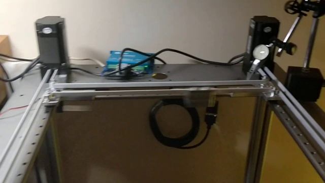 H-Bot x,y Repeatability test. Leadshine hbs507 motor driver at 5000 steps/rev. Encoder set to 4000 steps/rev GT2 24T Pulley = 208.33 steps/mm Max. Speed in Gcode set to 450 mm/s