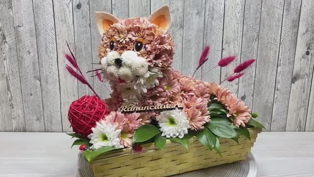 Композиция из живых цветов кошка