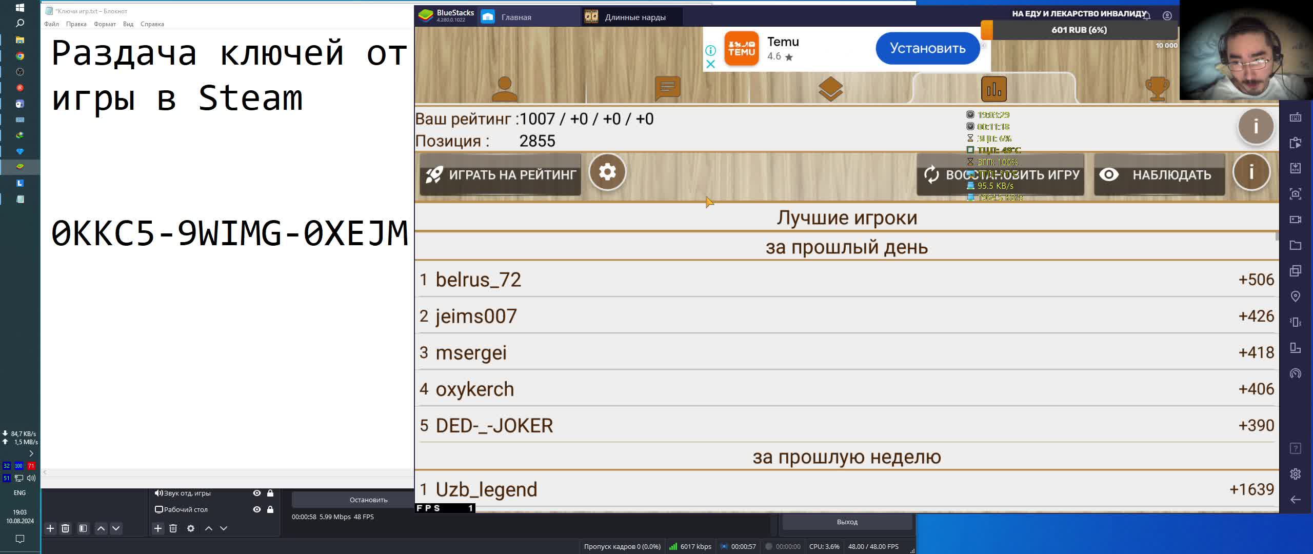 Раздача ключей от игры в Steam