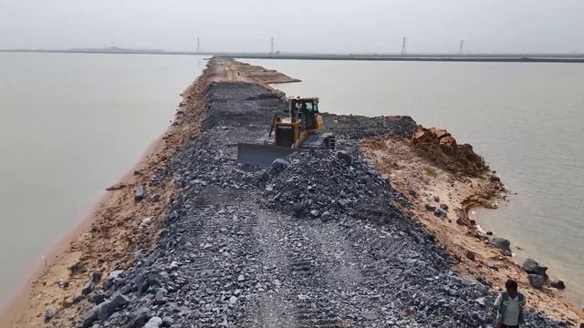 Строительство, дорога на озере, восстановление