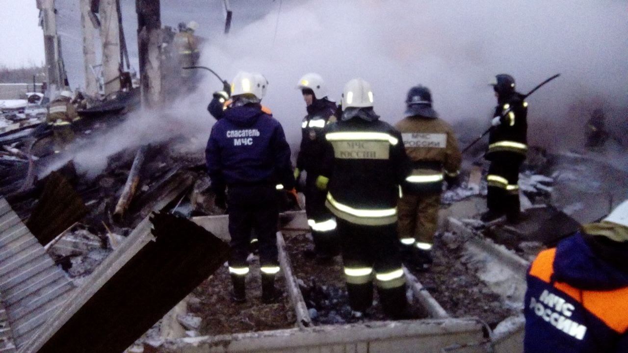 В 04.55 мск 11 декабря 2016 года в оперативную дежурную смену Центра управления в кризисных ситуациях Главного управления МЧС России по Республике Татарстан поступило сообщение по 112 от охранника объекта о хлопке и последовавшим за ним пожаре на производственной базе в г.Нижнекамск, пос. Строителей, ул. Центральная, д.77. На момент прибытия первых пожарных подразделений в 05.05 мск происходило горение на площади 100 кв.м., кровля обрушилась вовнутрь здания. С места пожара объявлен ранг пожара №2. Здание цеха по производству пластиковых изделий, одноэтажное, железобетонное, размером в плане 30х30 метров, кровля металлическая по железобетонным фермам. На тушение были поданы 3 ствола РСК-50, работали 3 звена ГДЗС. 05.17 11.12.2016 года локализация пожара. 06.56 11.12.2016 года ликвидация открытого горения. По данным Центра медицины катастроф Минздрава Татарстана, с места пожара 4 человека госпитализированы в Нижнекамскую ЦРБ, ещё двое обратились самостоятельно, всем пострадавшим оказывается квалифицированная медицинская помощь. К сожалению, погибли три человека, их личности установлены. В 09.07 мск при разборе завалов обнаружено тело четвертого погибшего человека. В 09.13 обнаружено тело пятого погибшего. Для ликвидации последствий пожара привлекались: 68 человек, 18 единиц техники, в том числе от МЧС России - 42 человека, 10 единиц техники. На месте работают дознаватели Государственного пожарного надзора по выяснению причины пожара и гибели людей.
