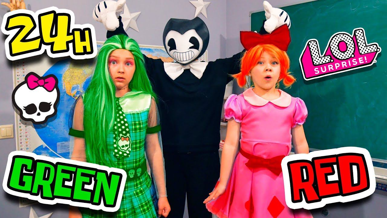 Бенди челлендж! Френки и КУКЛА ЛОЛ 24 часа в одном цвете! Красный против зеленого!