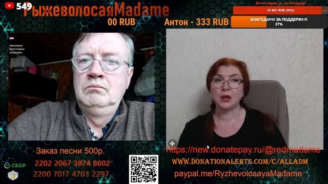 Стримы проводим на новом канале по ссылке https://www.youtube.com/channel/UCpd7cP8a8TbXkhRfZB9-V1g также стримы можно смотреть на следующих платформах https://vkplay.live/rmadame https://vk.com/video/ @RMadame https://boosty.to/ryzhevolosaya-madame Свежие нарезки можно смотреть https://dzen.ru/redheadmadamchat?share_to=link https://www.youtube.com/@RMadam1 https://www.youtube.com/@RMadame Пообщаться в голосовом чате, обсудить новости и узнать первым о предстоящем стриме можно подписавшись на телеграмм канал https://t.me/redheadMadamchat Все беседы ведутся с развлекательной целью и не направлены на разжигание какой либо вражды. Поддержать меня карта Сбер 2202 2067 3874 8602, Тинькофф 2200 7009 0724 4924 или голосовым донатом по ссылке https://www.donationalerts.com/r/alladm Для вопросов и предложений @RedHeadMadamBot