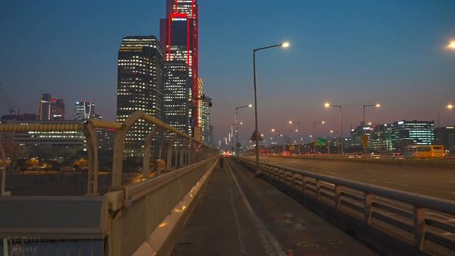 [4K HDR] Seoul Evening Walk Crossing Mapo Bridge and Hangang River ASMR
