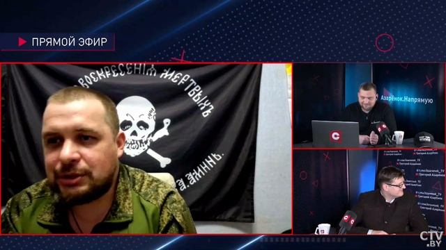 Отрывок из прямой трансляции_24-11-2022_Азарёнок. Напрямую | Лукашенко на саммите ОДКБ | Обстановка на СВО | Апачев, Татарский, Петровский Проект «Азарёнок. Напрямую». О важном в прямом эфире. Вместе с экспертами обсудили саммит ОДКБ, ход специальной военной операции и культурный фронт войны. В гостях донецкий ополченец, военный корреспондент, блогер Владлен Татарский; политолог Пётр Петровский; музыкант, военный корреспондент Аким Апачев. Григорий Азарёнок, телеканал СТВ (Беларусь)