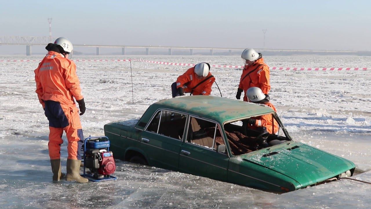 2018 02 21 учения на реке Зея по провалу автомобиля под лед