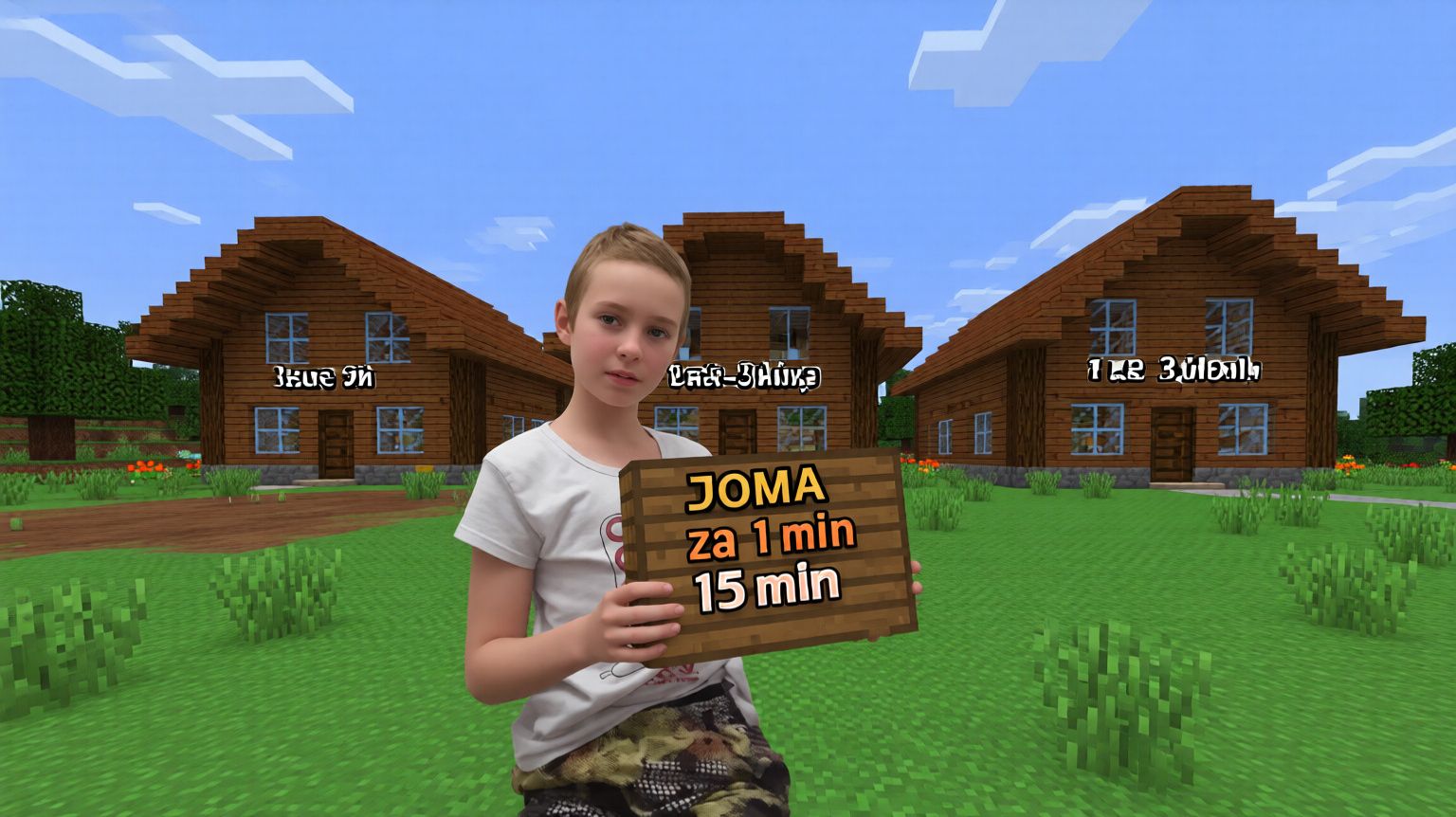 я построил 3 дома за1 мин 5 мин 15 мин