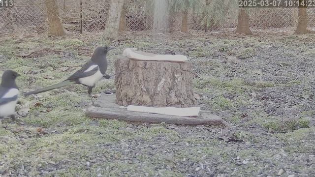 Сало на пеньке очень красивое-сорока даже боится кушать