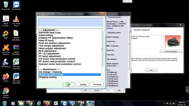 Reset Printer EPSON L550 ( A Printer's Ink Pad Is At the End Of Its Service Life ) Service Required