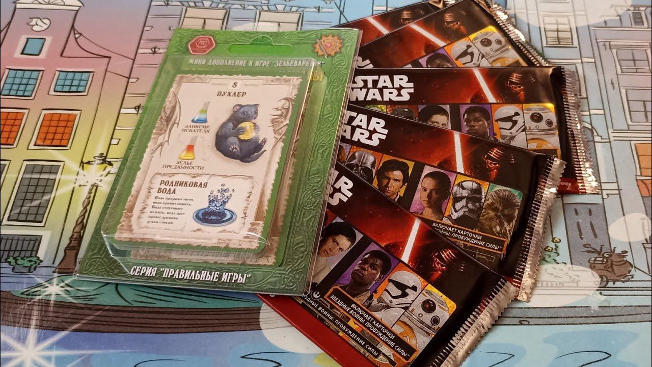Распаковка и обзор карточек Star wars и мини дополнения настольной игры Зельеварение.