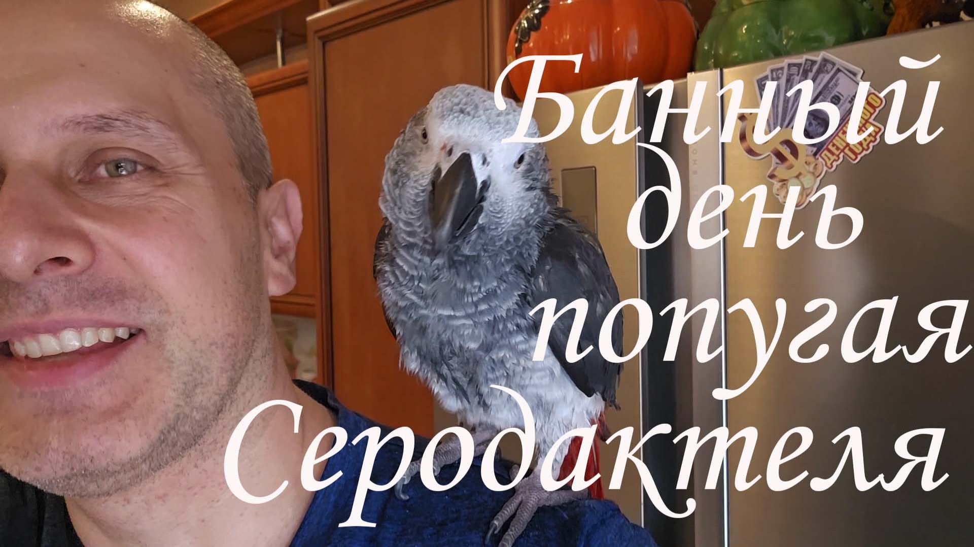 Попугай Серодактель после помывки под душем.