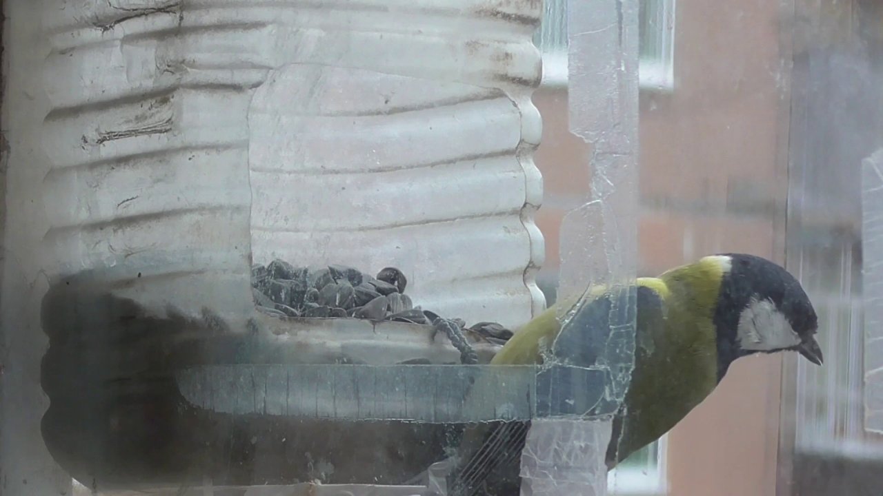 Птицы синицы прилетают к кормушке. Видео 8 минут