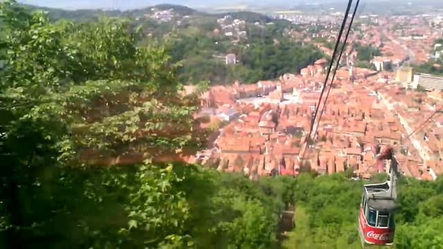 Brașov, Romania. Riding up the cable car to Mount Tâmpa