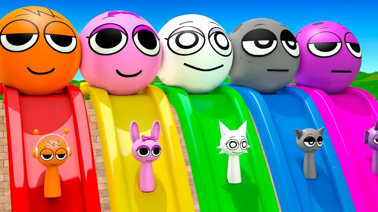 Игра с длинными слайдами с невероятной коробкой, Спрунки, Пинки, Орен Грей, Венда Дюрпл, 3d-игра с животными, Забавные 3d-животные